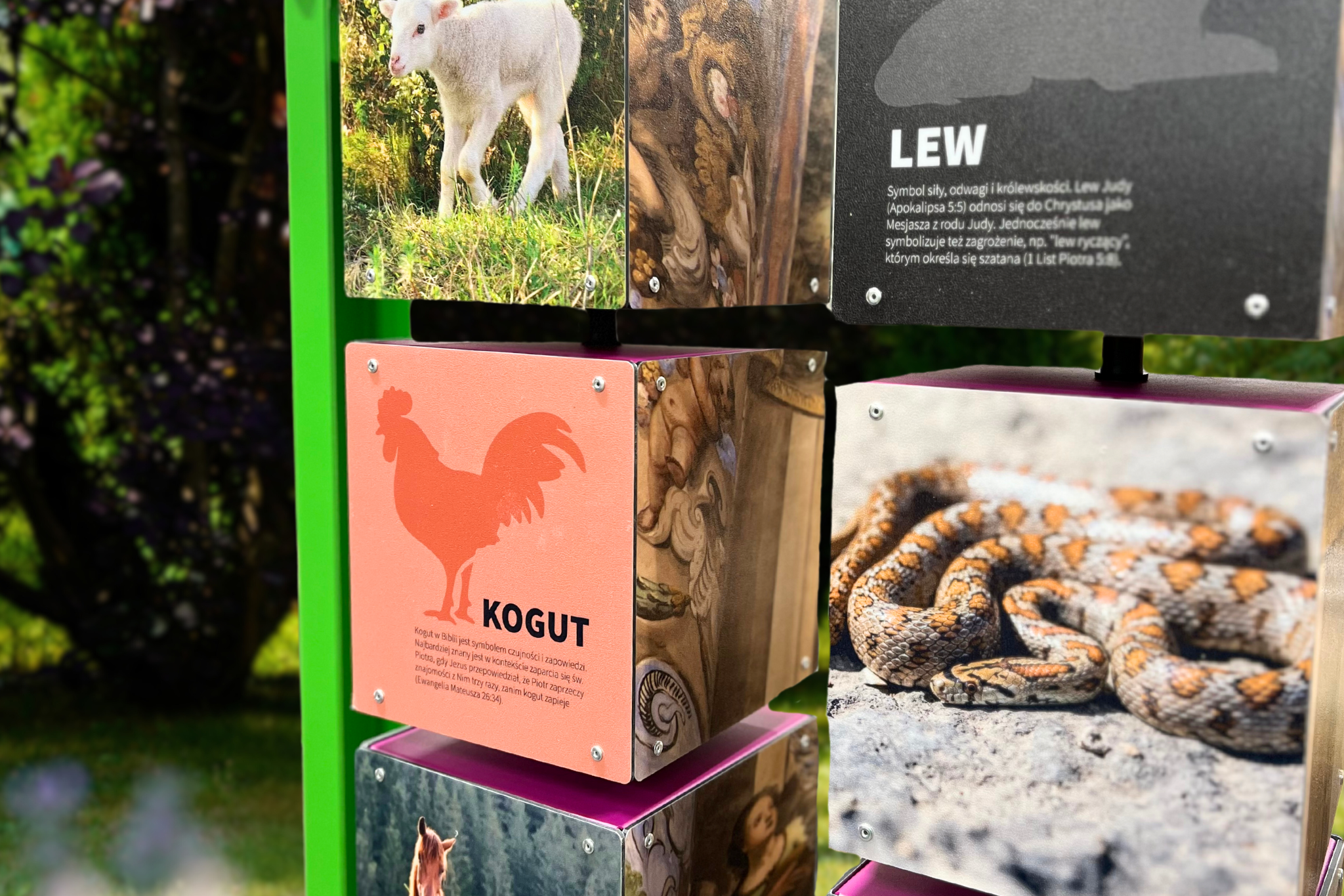 Unikalna tematyka – jedyna taka gra edukacyjna, która poprzez zabawę łączy symbole biblijne, atrybuty świętych i sztukę sakralną. Ponadto nauka odbywa się na świeżym powietrzu