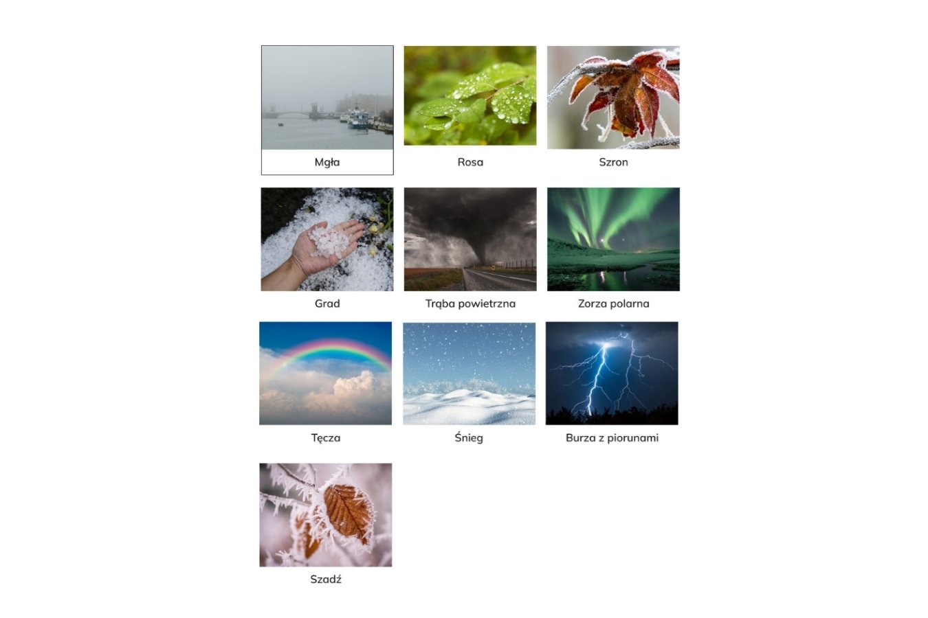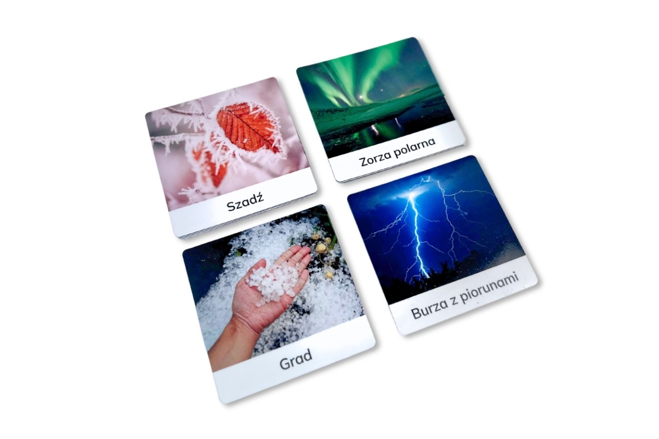 Zamieszczono na nich rzeczywiste fotografie najbardziej popularnych opadów i zjawisk atmosferycznych. Rzadko kiedy mamy możliwość obserwowania niektórych z nich w przyrodzie, a edu-box umożliwia dzieciom ich poznanie w bezpiecznym i przystępnym formacie. To cenna pomoc dydaktyczna, która wspiera naukę przyrody w duchu metody Montessori.
