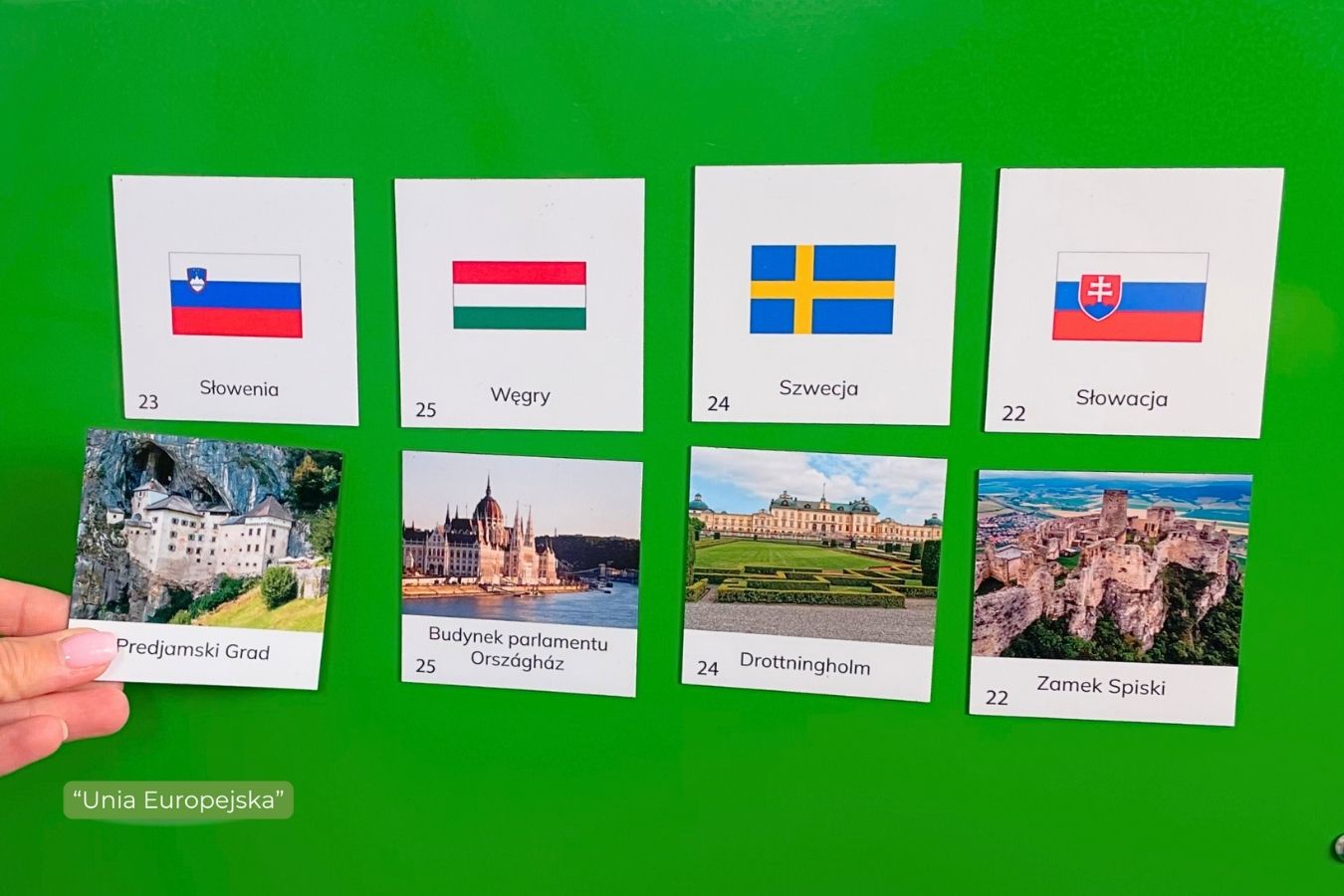zawiera 27 par magnesów Państwo + Sławne Miejsce w danym kraju zgodne z metodą Montessori