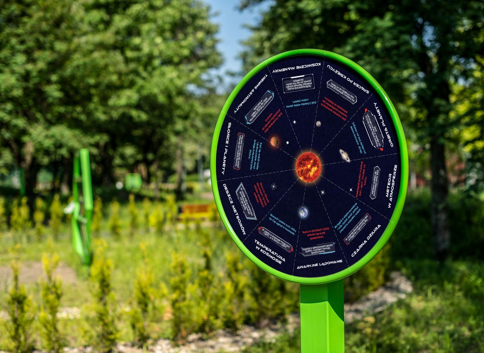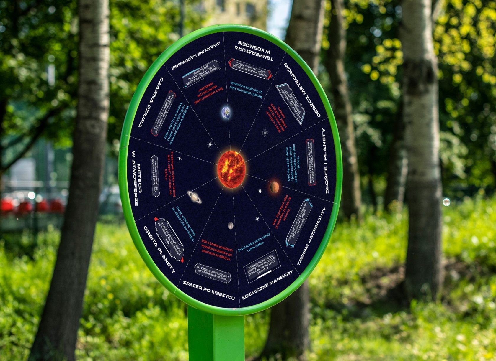 To wyjątkowe urządzenie edukacyjno-ruchowe, w którym każde zakręcenie kołem otwiera przed dziećmi nowe kosmiczne wyzwanie. Po zatrzymaniu tarczy strzałka wskazuje zadanie inspirowane ruchem ciał niebieskich, lotami rakiet lub życiem astronautów.